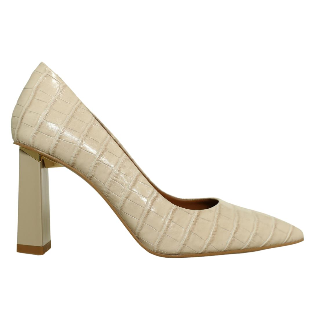 Bej Kroko Deri Kadın Topuklu Ayakkabı
