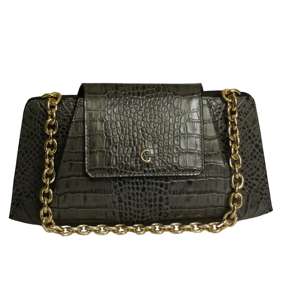 Gri Deri Kroko Baskı Kadın Omuz Çanta