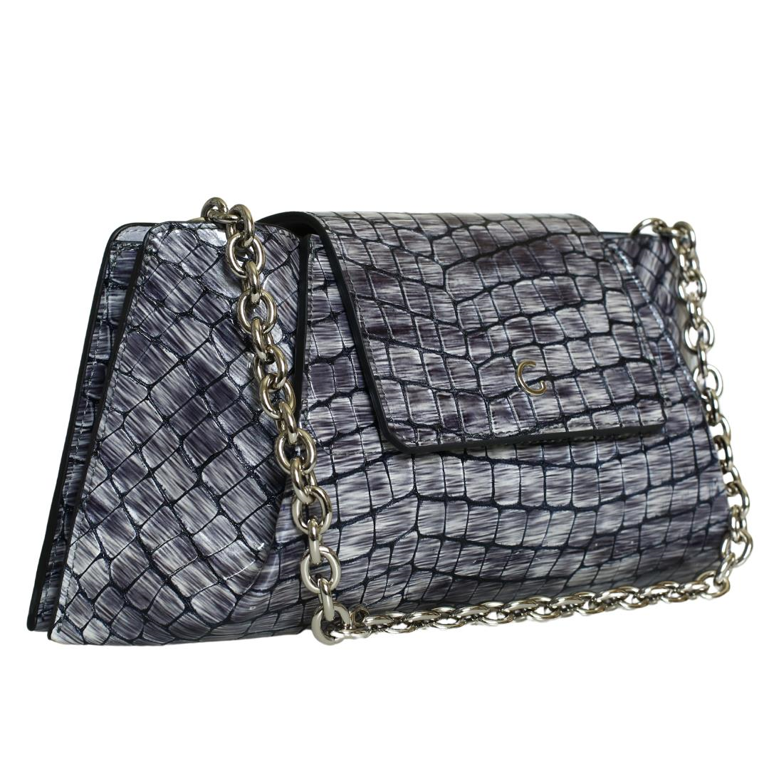 Gri Rugan Kroko Baskı Kadın Omuz Çanta