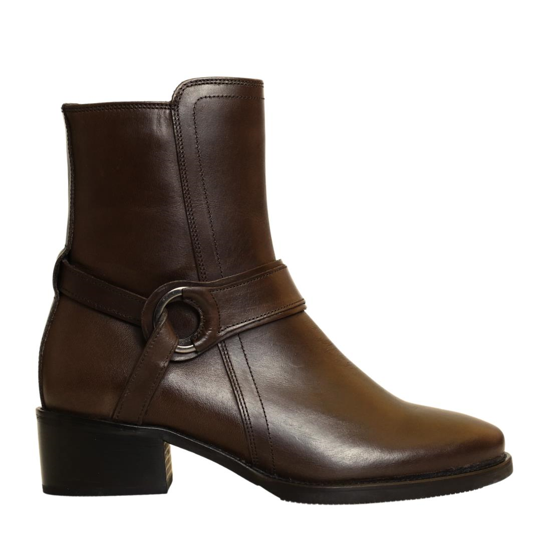 Kahve Deri Kadın Topuklu Bot