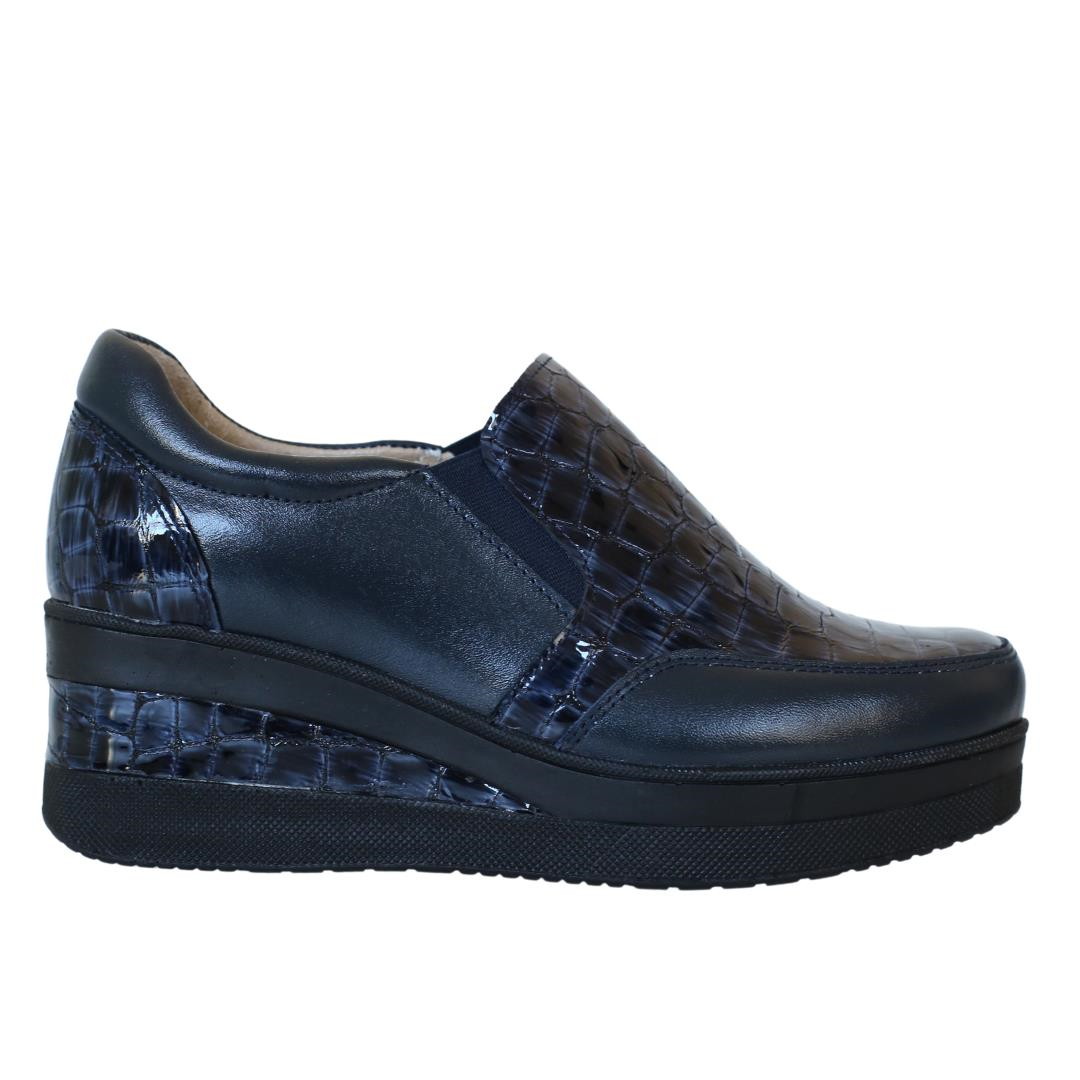 Lacivert Baskı Deri Kadın Dolgu Topuk Ayakkabı (P-02458)
