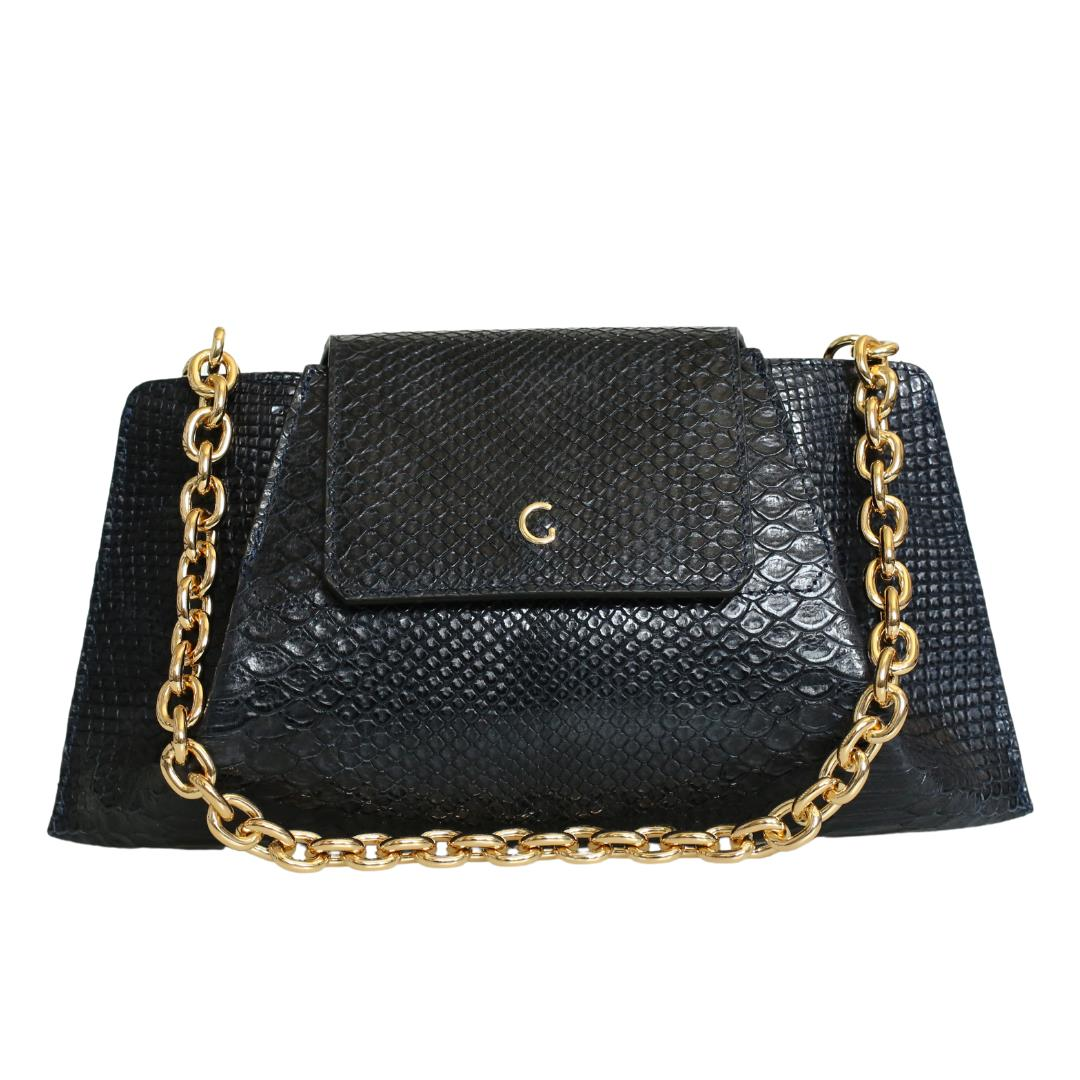 Lacivert Deri Anakonda Baskı Kadın Omuz Çanta