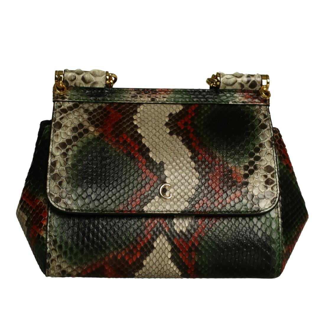 Multi Kırmızı-Yeşil Python Deri Kadın El Çanta