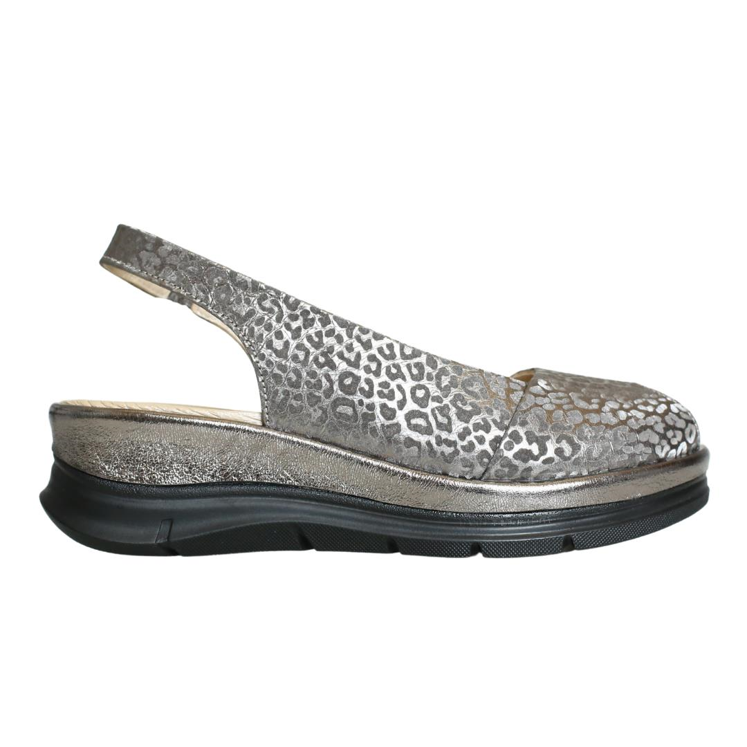 Platin Leopar Deri Kadın Dolgu Topuk Sandalet (P-07570)