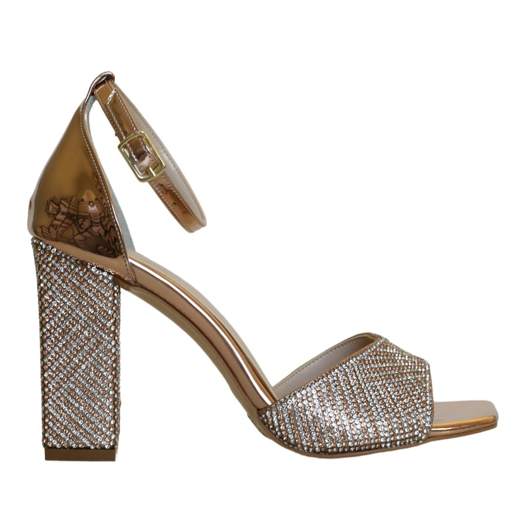 Rose Taşlı Bilekten Bantlı Topuklu Ayakkabı (P-06342)
