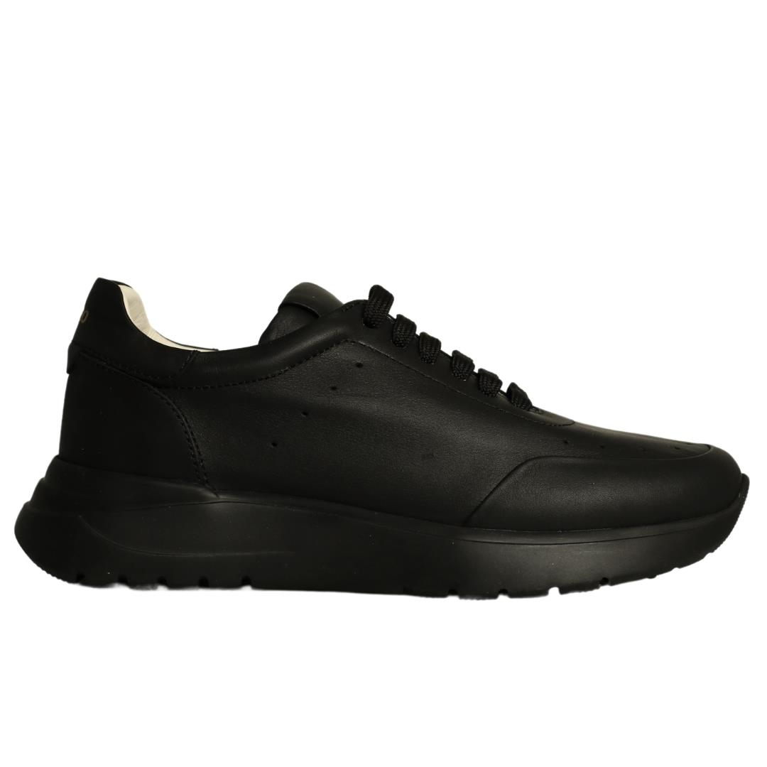 Siyah Deri Kadın Bağcıklı Sneaker (P-06762)