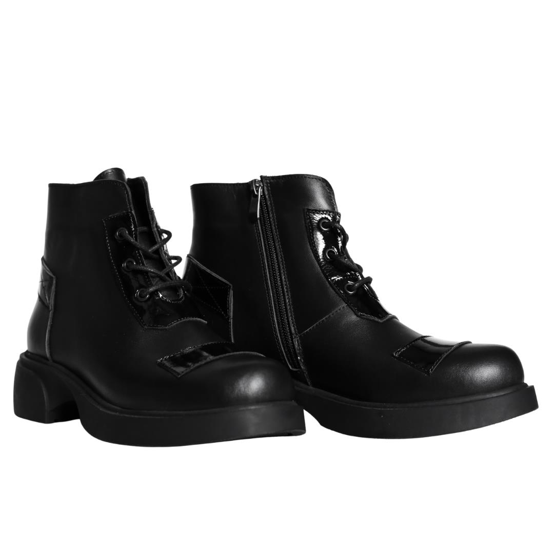 Siyah Deri Kadın Fermuarlı Bot