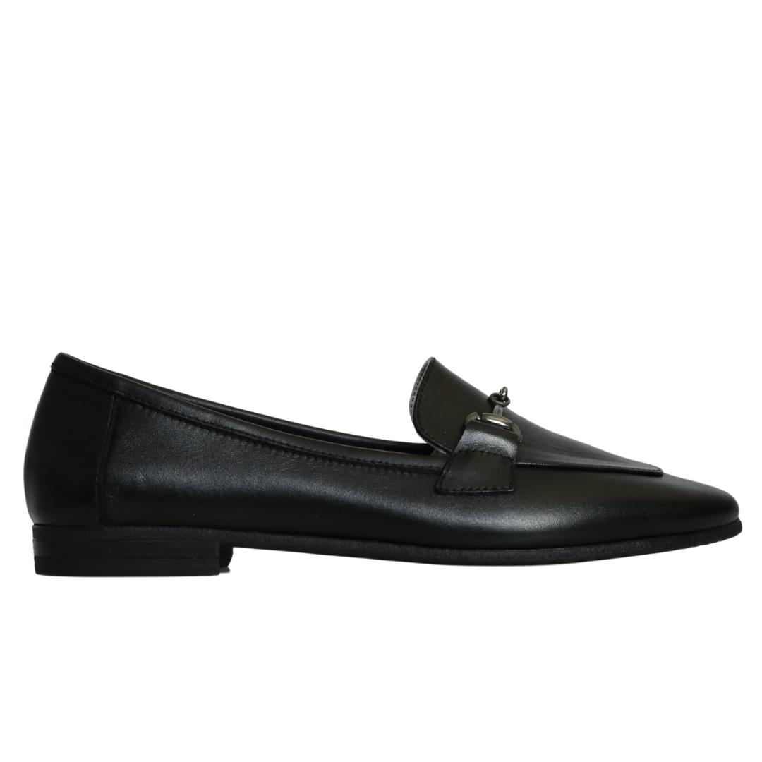 Siyah Deri Kadın Tokalı Babet (P-07155)