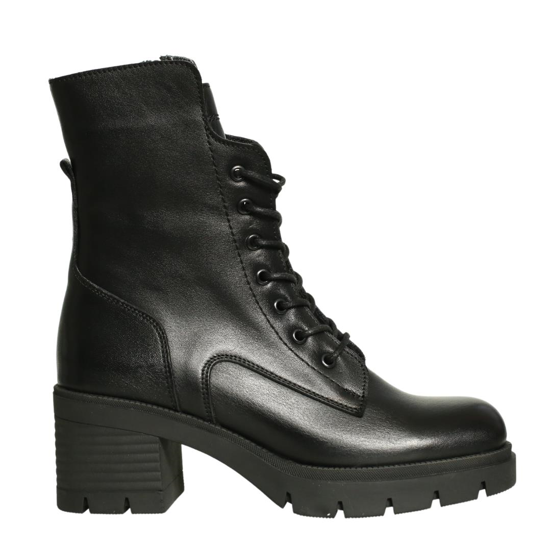 Siyah Deri Kadın Topuklu Bot