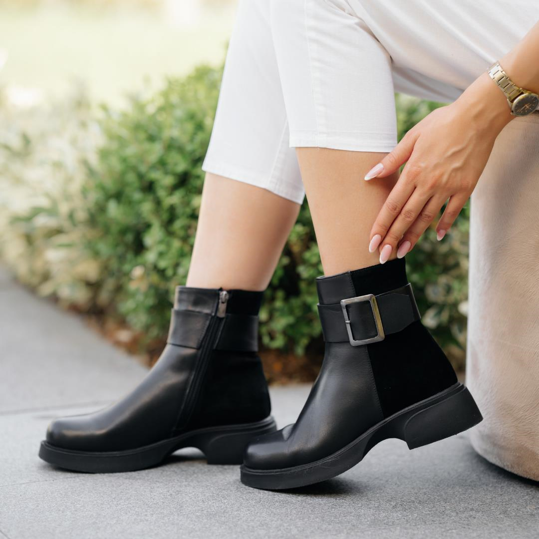 Siyah Deri Tokalı Fermuarlı Bot (P-07767)