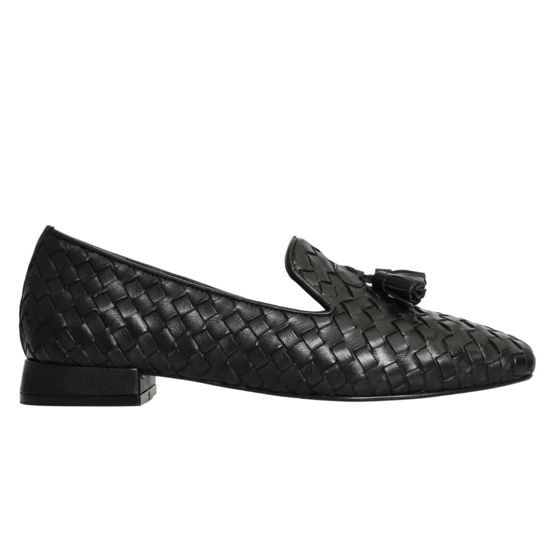 Siyah Örgü Deri Kadın Püsküllü Babet (P-07238)