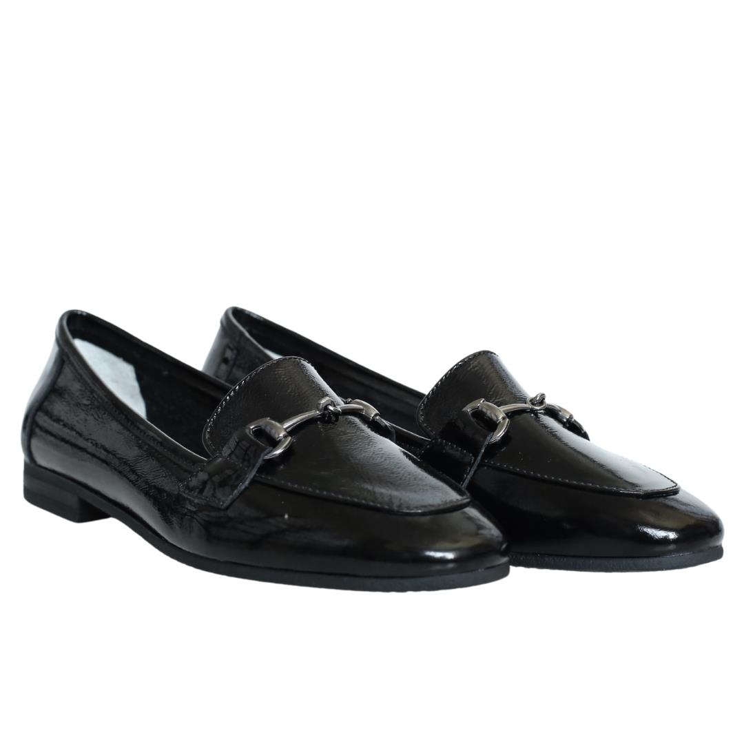 Siyah Rugan Deri Kadın Tokalı Babet (P-07156)