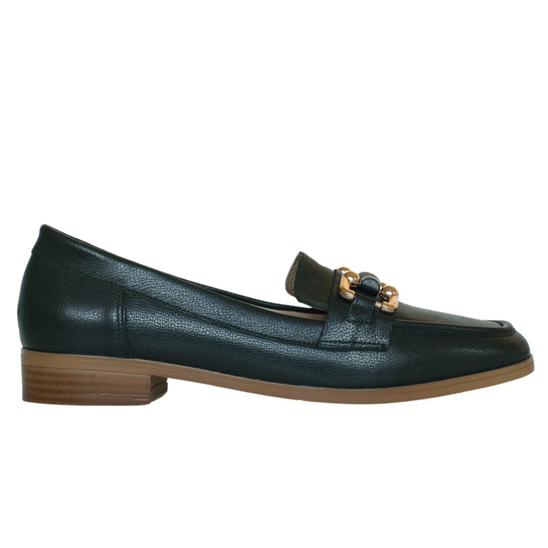 Yeşil Deri Tokalı Kadın Loafer